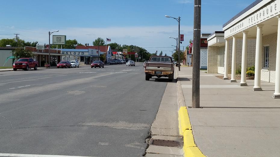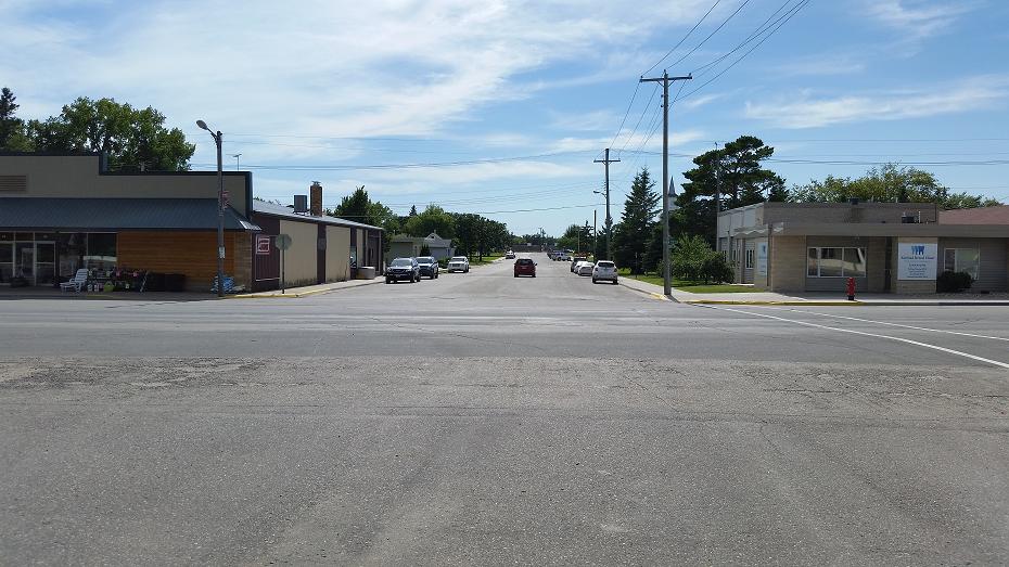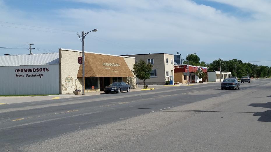 Kim's Shear Design beauty shop, Germundson's furniture store, and the Eagles